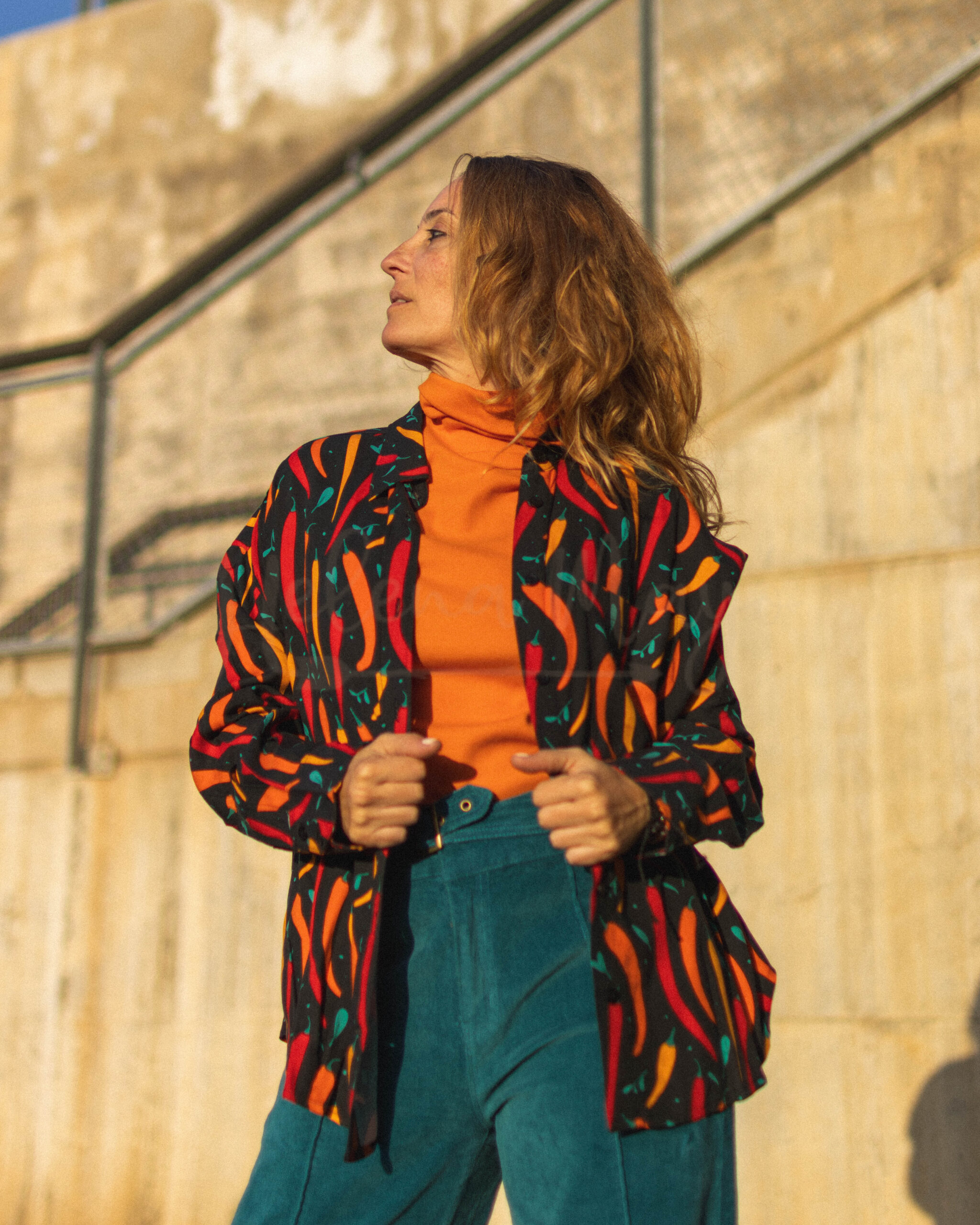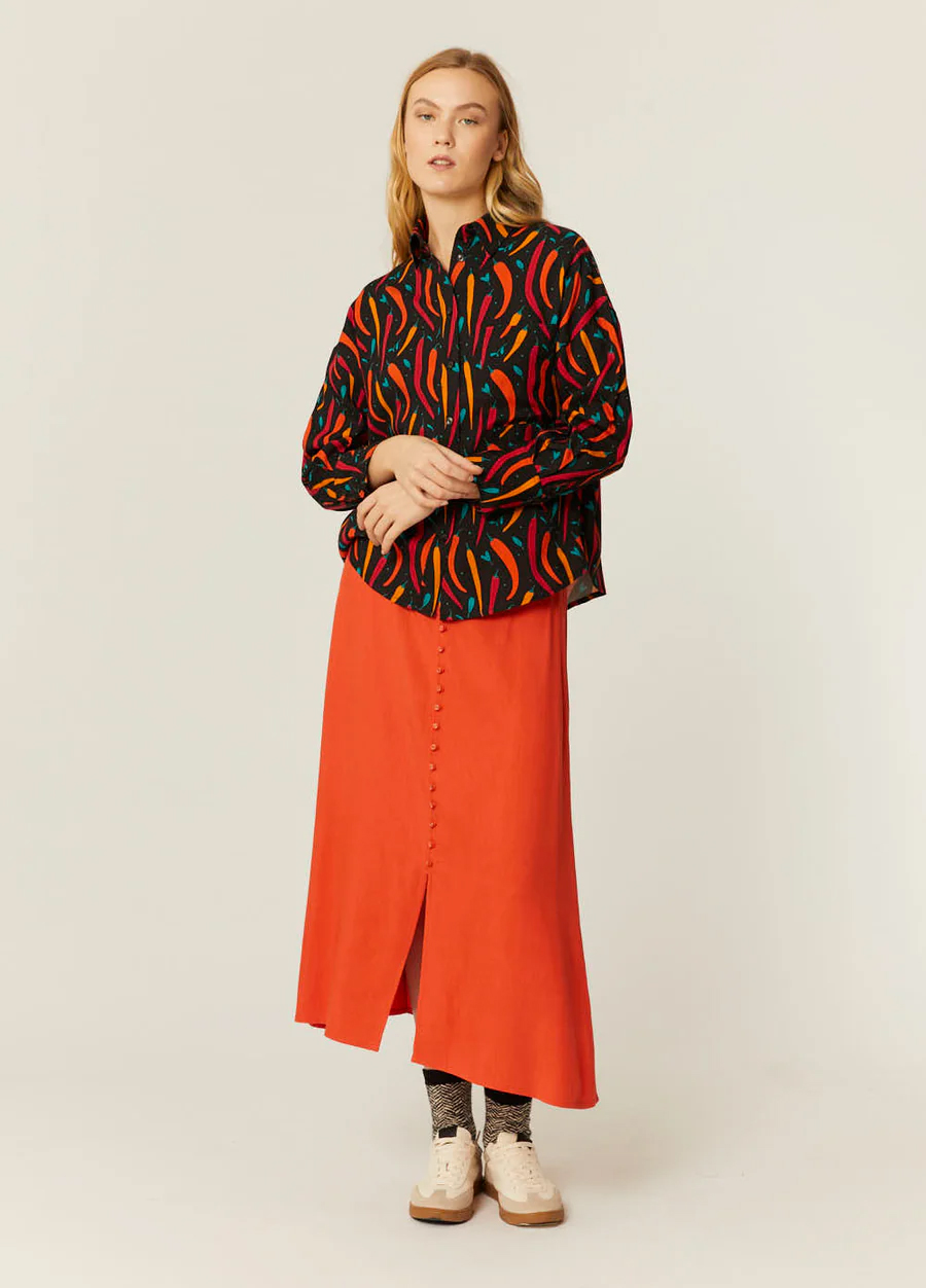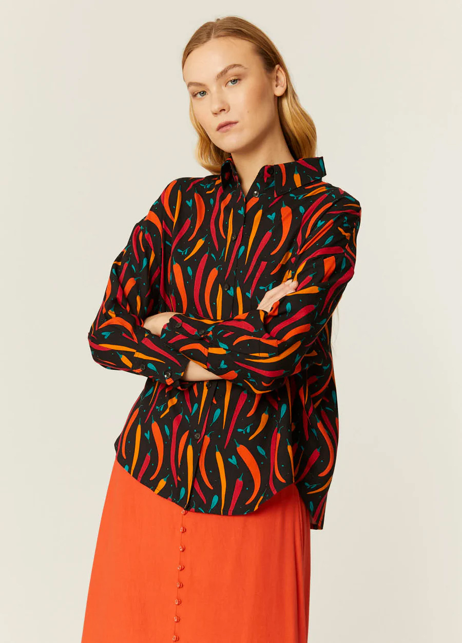 Camisa oversize con estampado de chiles, en tejido 100% Viscosa con certificado Lenzing Ecovero.