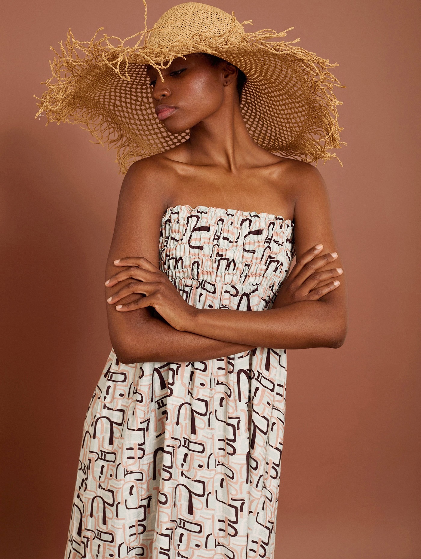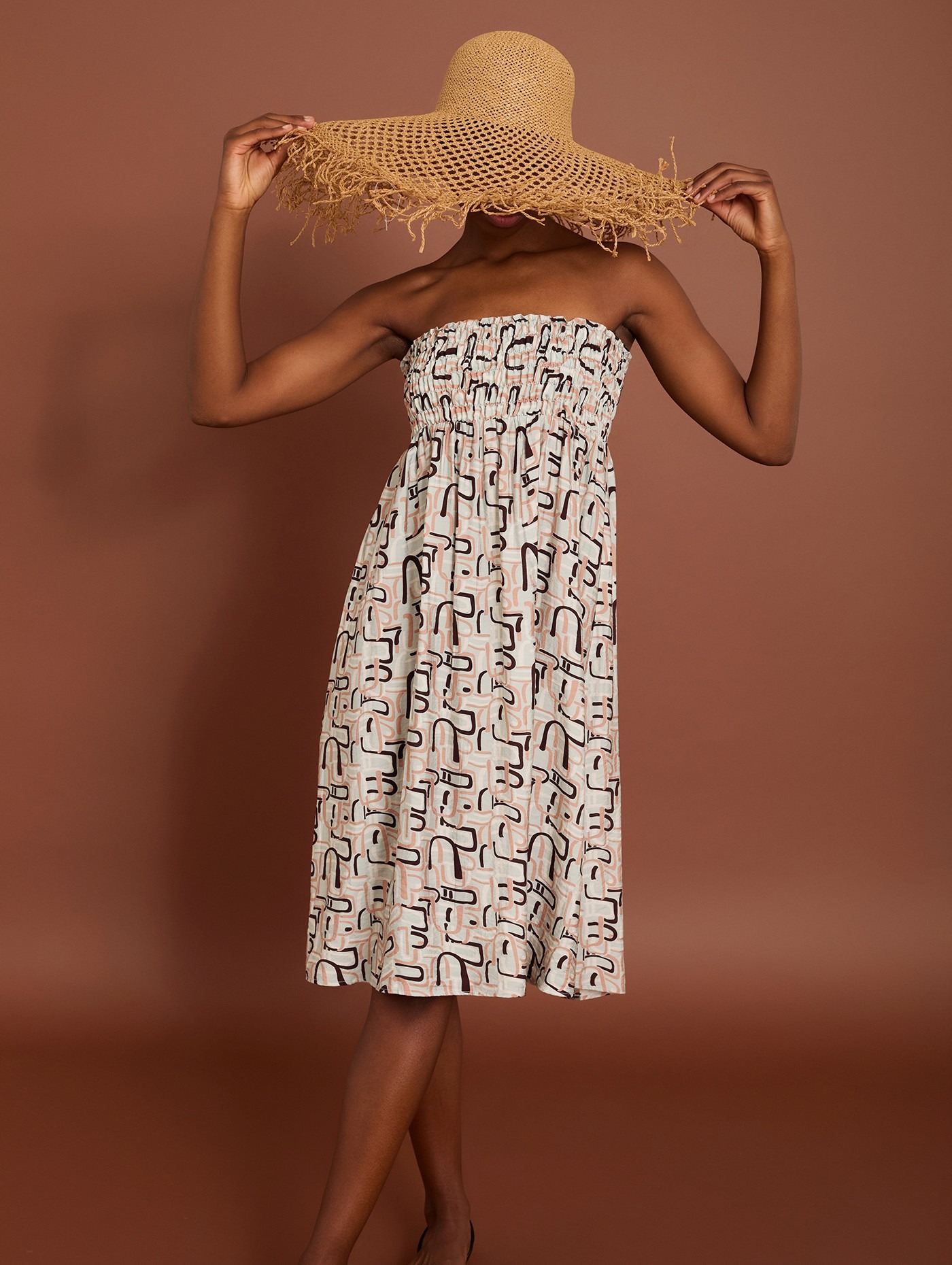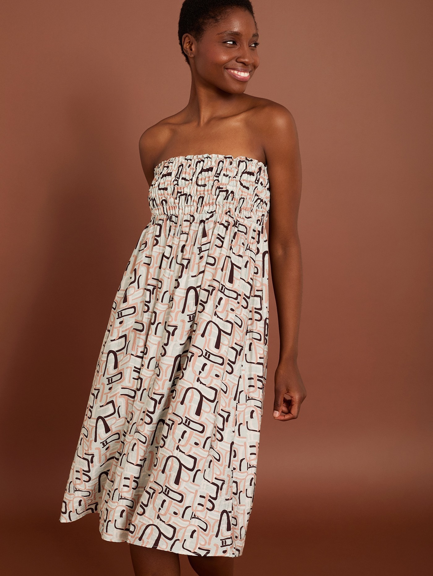 Falda larga con cinturilla en smock elástico y estampado geométrico Meisïe