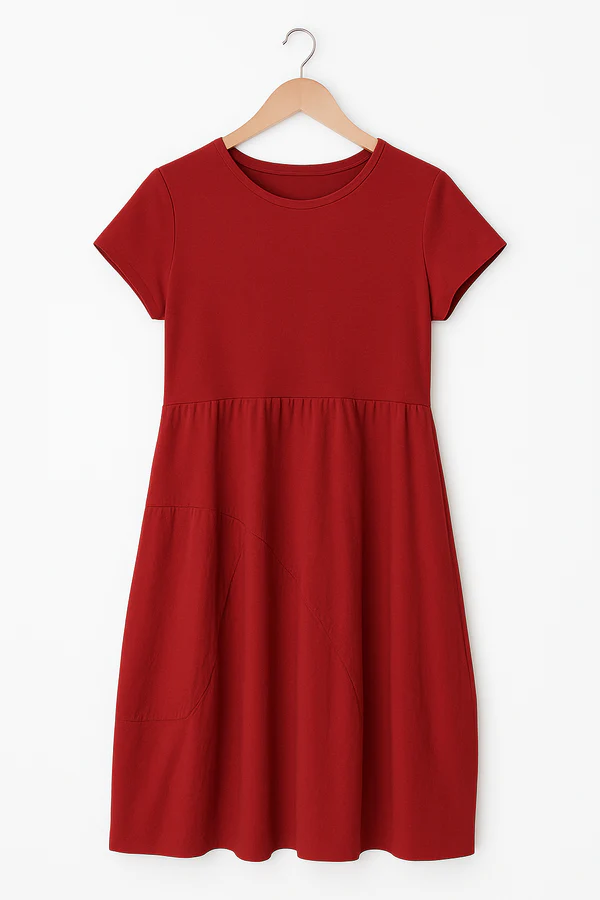 Vestido combinado con jersey y tejido de algodón, ligero y original.